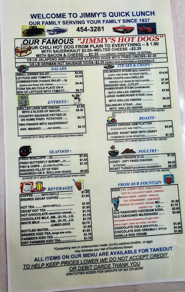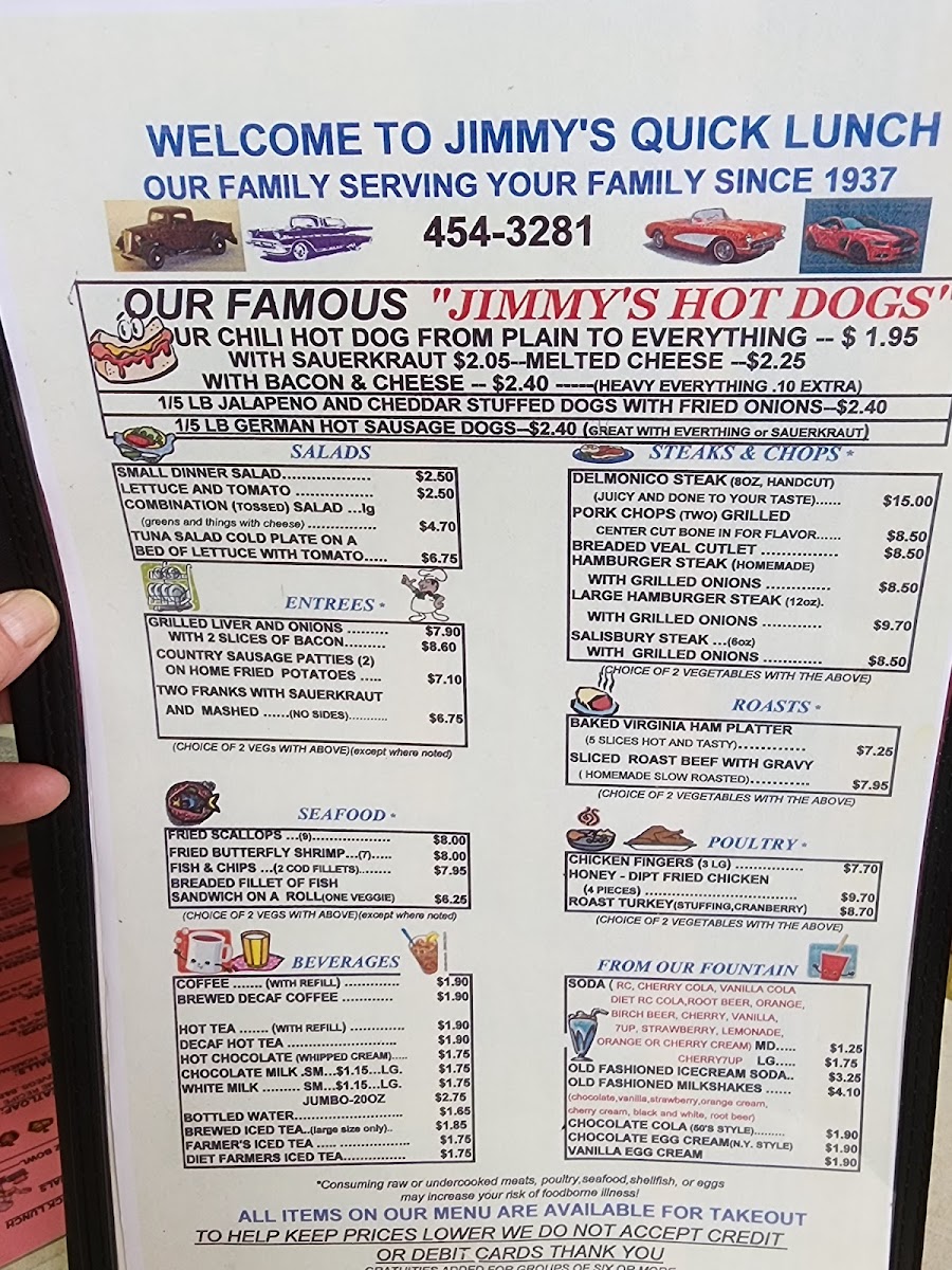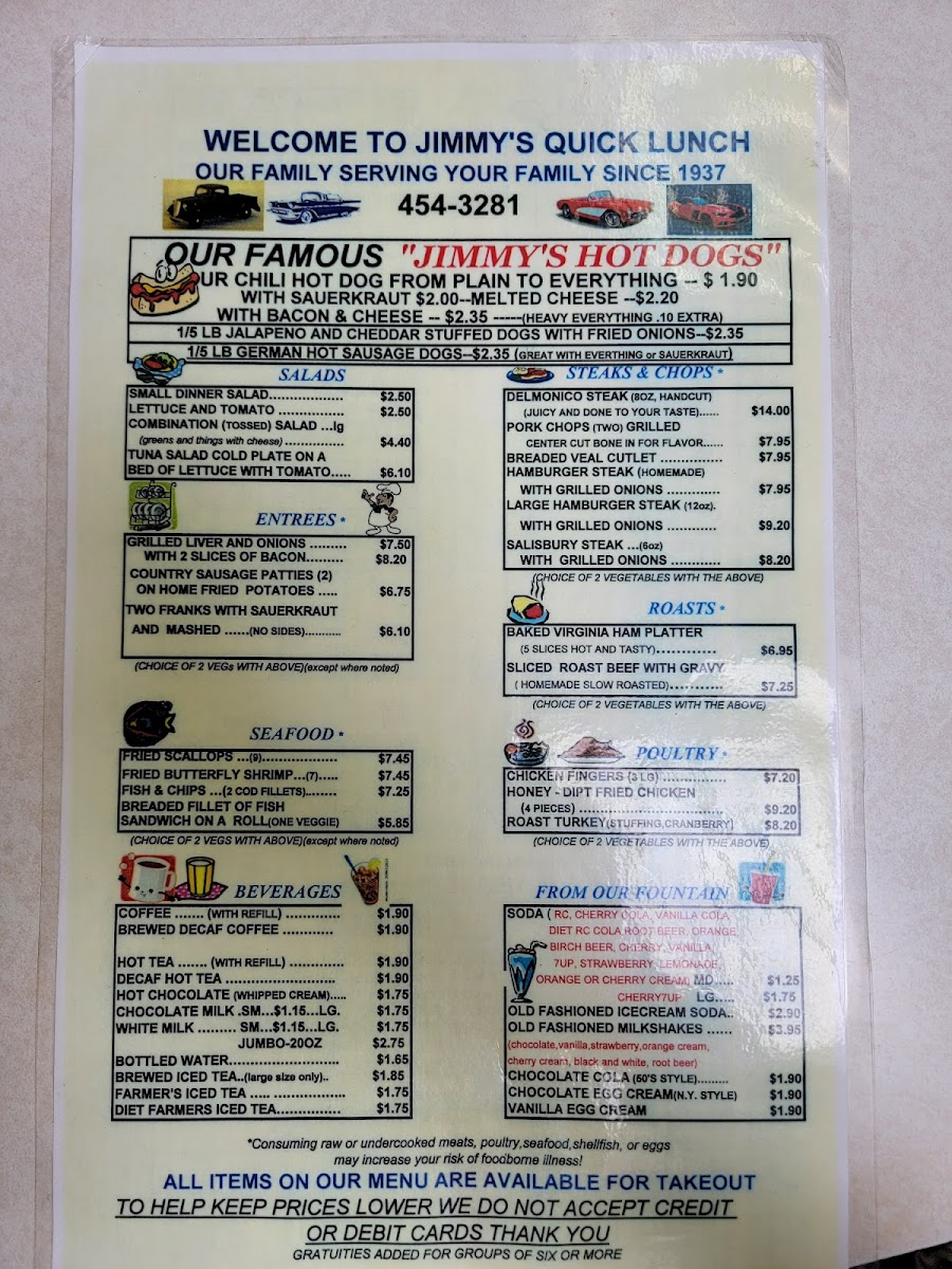 Welcome to Jimmy's Quick Lunch, a cherished gem located at 123 E Broad St in Hazleton, PA. Established in 1937, this classic eatery has been delighting patrons with its delectable hot dogs and nostalgic charm for decades.